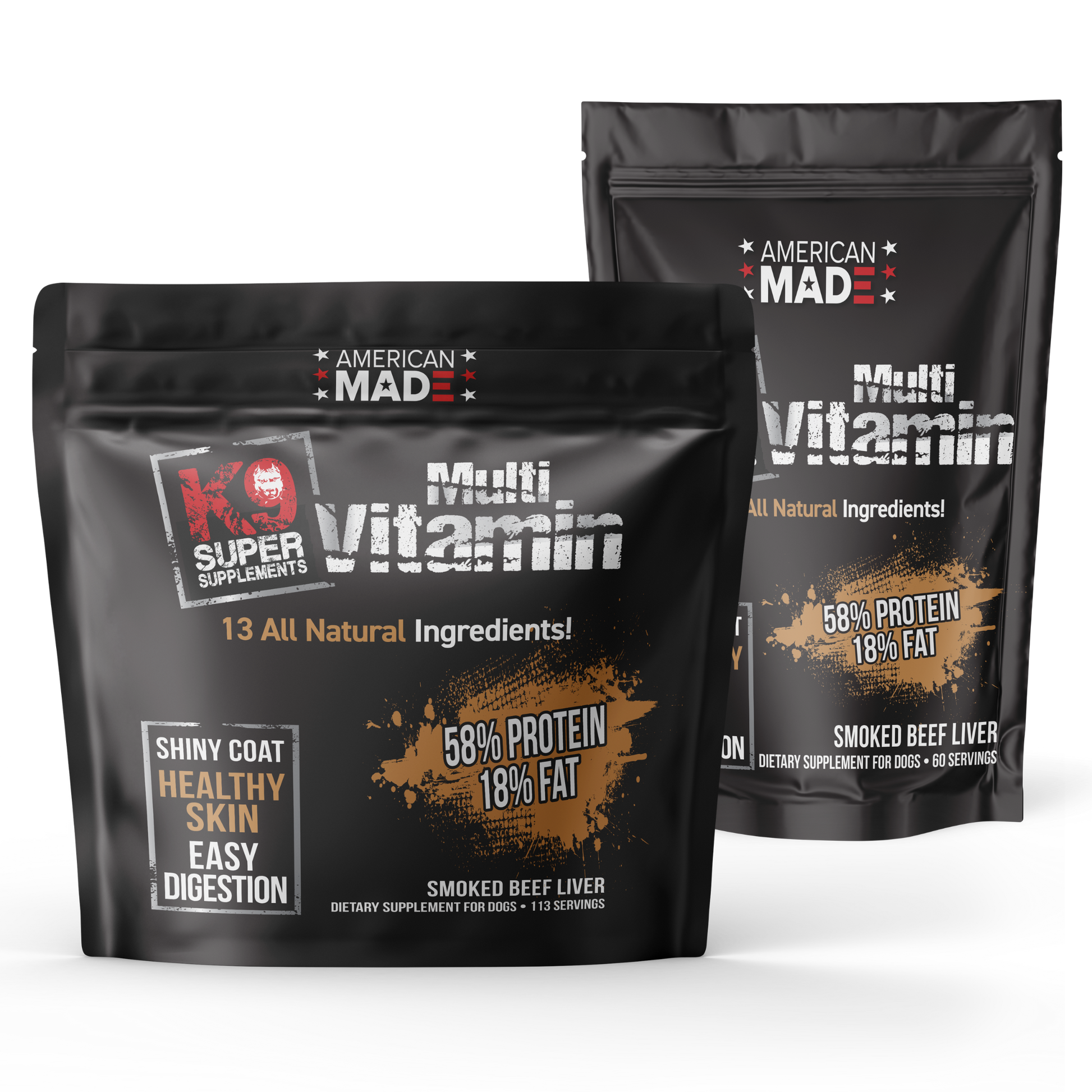 Even the most finicky dogs love the all-natural Smoked Beef Brisket flavor. K9 Multivitamin is packed with 14 nutrient-dense, whole-food ingredients designed to work together in nutritional synergy to support total health and vitality.
