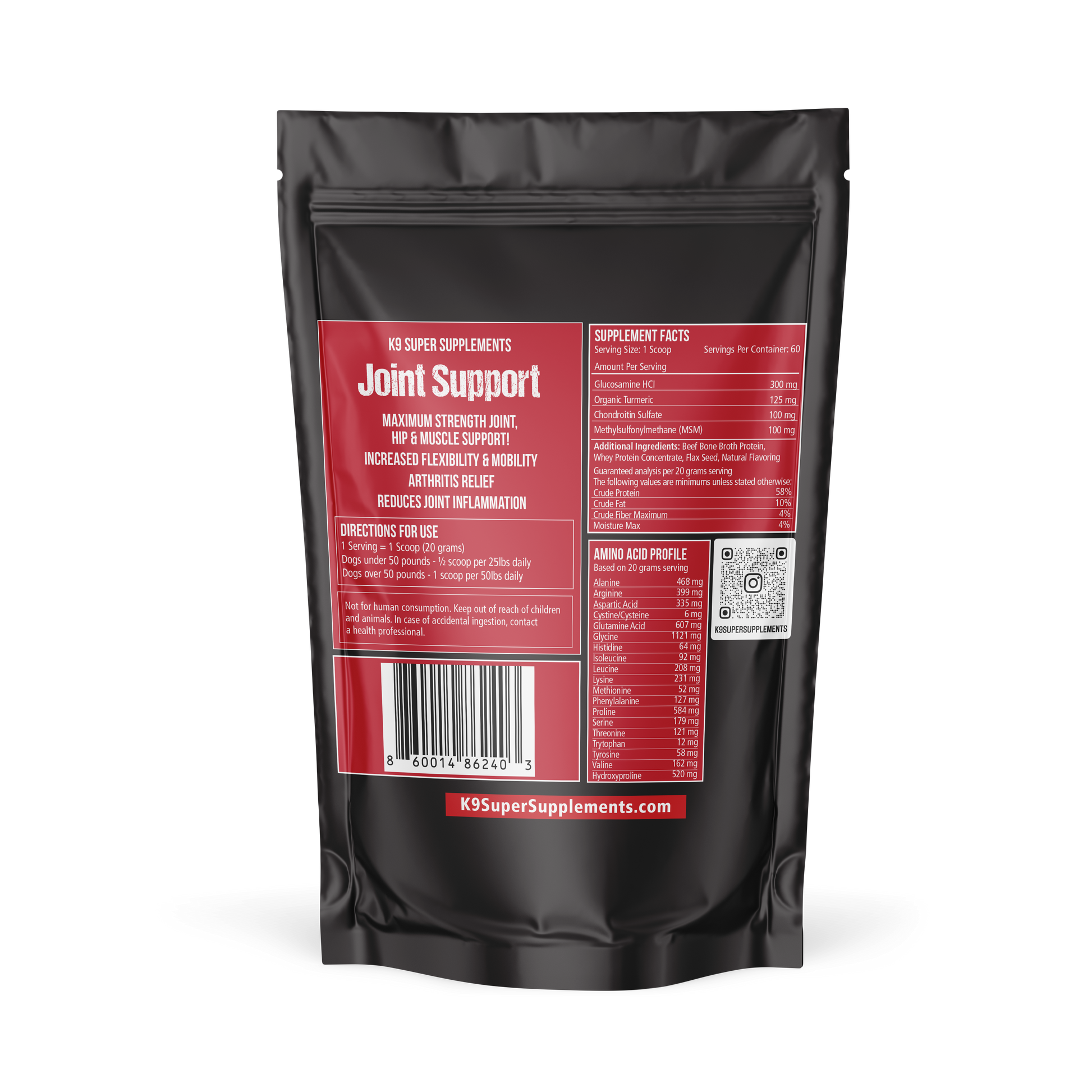 K9 Joint Support provides comprehensive hip and joint support for your dog. It works quickly to naturally lubricate joints, alleviate inflammation, and enhance your dog’s flexibility and mobility.