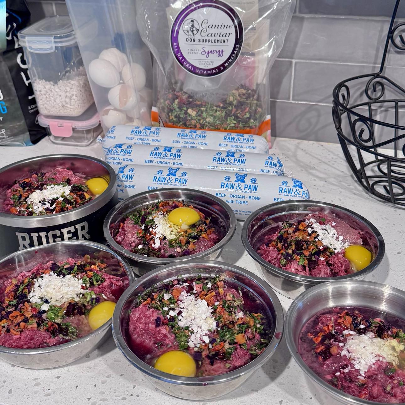 My pups gobble this up! It is high quality raw food for their meals and at 9 and 9 1/2 years, my mature dogs act like pups. Highly recommend!